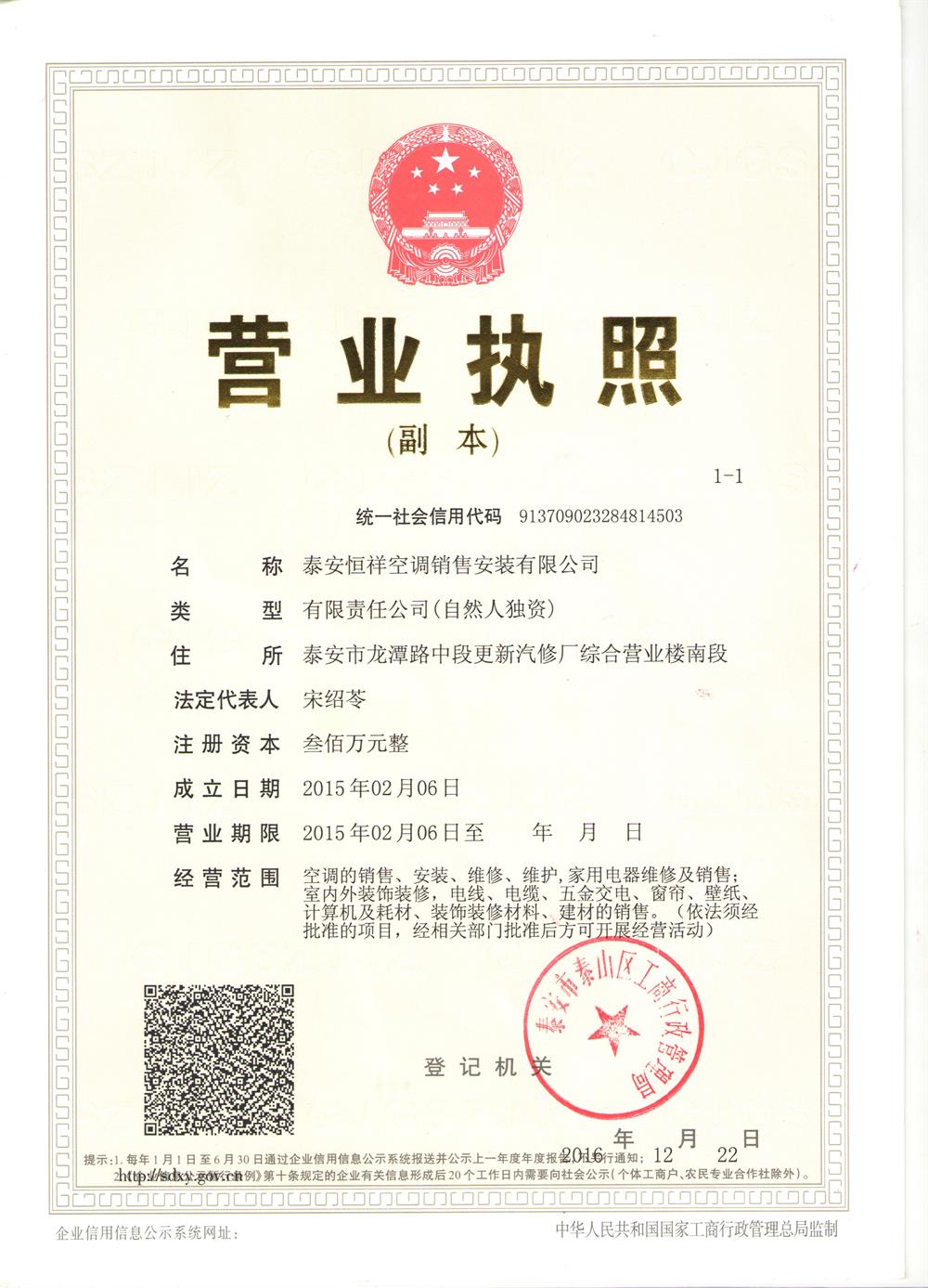 泰安恒祥空調(diào)銷售安裝有限公司,位于山東省泰安市岱岳區(qū)靈山大街與迎勝路交叉口向西200米路北王府花園A區(qū)12號商業(yè)樓103店鋪,其前身泰安恒祥電器經(jīng)營部,是泰城格力空調(diào)專賣店,也是我們市目前經(jīng)營格力系列產(chǎn)品的代理商。因業(yè)務(wù)發(fā)展需求,2012年3月26日更名為泰安恒祥空調(diào)銷售安裝有限公司,力爭打造規(guī)范化空調(diào)公司,同時響應(yīng)總部要求重裝為以格力家用空調(diào)、小家電系列、空氣能熱水器、晶弘冰箱、凈水機(jī)系列及家用、商用中央空調(diào)一體,并設(shè)有所有格力產(chǎn)品的實(shí)機(jī)體驗(yàn)區(qū)。